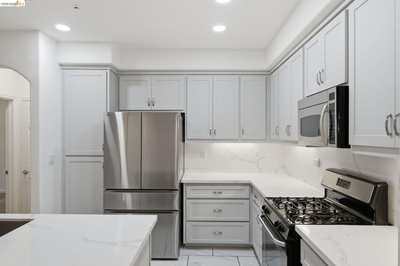 This recently updated unit is the nicest in the community and features a great location! Sellers updated kitchen and baths with sleek quartz counters, modern cabinets, and tile and have freshly painted the interior. Rare single level unit features all living spaces on one floor. Open floor plan features a spacious living room with private patio access. Kitchen offers a large island with lux quartz countertops and lots of cabinet and counter space. Large primary en-suite features a walk-in closet, access to patio, and bath has dual vanities, stall shower, and separate tub. Second bedroom has separate private balcony and large closet. Full laundry room features washer/dryer and additional cabinets. Ideal location in the community is close to the pool, fitness center, and clubhouse. There is also a green belt right in front of the home. Very low HOA dues ($377/month) as well! This desirable Dublin Ranch location offers easy access to shops, restaurants, schools, parks, medical centers, and easy freeway access. With an attached 2 car side-by-side garage, fantastic floor plan, and unbeatable location, this home has it all!