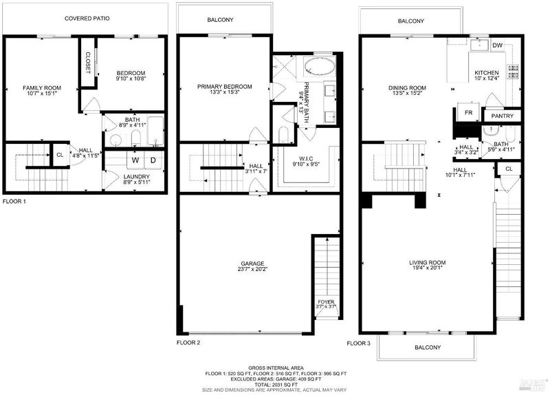 This incredible Quarry Heights townhome is peak living with the comforts of a luxury home in a convenient location. A sweet yard leads inside to stairs up to your living room with recessed lighting, ceiling fan and bright slider to the first of your balconies. Beyond is the dining space with ornate chandelier and kitchen with granite countertops, gorgeous tilework, stainless steel appliances and bartop seating. Another balcony and half bath complete the level. Stairs down lead to the two-car garage and primary suite with private balcony, soaking tub, spacious shower, dual-sink vanity, and remarkable walk-in closet with system. One more trip down the stairs to the ground level reveals a lovely tiled laundry room, open den with slider to the back patio, full bath, and guest room. The back patio offers a wonderful space to enjoy your morning coffee or evening dinner with covered area and fence overlooking vibrant shrubbery. This all enjoys a wonderful neighborhood chock full of parks, views, a new clubhouse, and easy access to downtown Petaluma and quick commute routes!