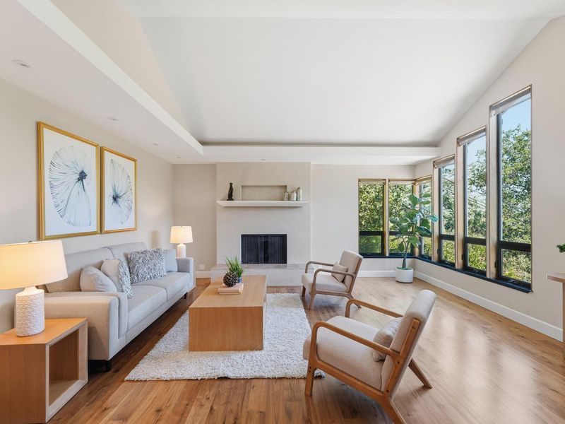 Lovely home nestled in the rolling hills of the Woodland Acres neighborhood of Los Altos. Close to everything, this 3-bedroom, 2.5-bath home sits on an approximately 21,500+/- sq. ft. lot offers an open floor plan, high ceilings, skylights, hardwood floors, peaceful views, and more. The spacious living room features a vaulted ceiling w/skylights, hardwood floors, a fireplace, and sliding glass doors that open to the backyard. The separate dining room showcases designer details and provides an inviting space for entertaining. The updated kitchen features granite countertops, custom cabinetry, stainless steel appliances, a pantry, and a breakfast nook. The separate family room off the kitchen offers high ceilings, skylights, a fireplace, and a wet bar. The primary suite includes an ensuite bath, walk-in closets, and an attached room that can serve as an office, nursery, or fourth bedroom. Surrounded by mature trees and lush foliage, the property features a fenced backyard with a new retaining wall and rear fence, two decks, lawn, and a patio. Located just blocks from Foothill Expressway, with access to Highway 280, shopping, and major tech companies. Garage, A/C Come see this little slice of heaven! Montclaire Elementary, Cupertino Middle, and Homestead High (buyer to verify).
