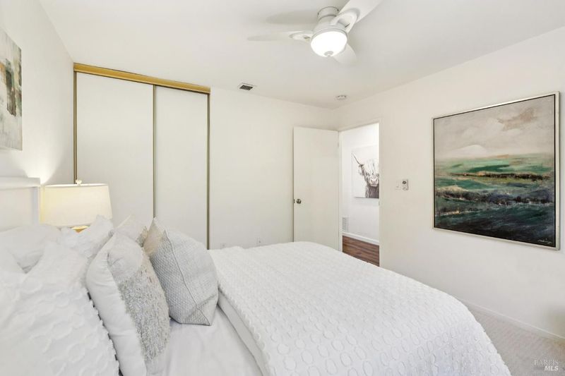 Fabulous Green Oaks two-story end-unit with two outdoor living spaces in a beautiful Terra Linda location! Discover this popular and rarely available 3 bedroom, 2.5 bathroom floorplan with main living area on the ground level, including a half bath and laundry area with sink. The bright and updated kitchen with stone countertops, lovely tile backsplash, and amazing storage opens to a great room area with living room, dining area, and fireplace. Fabulous indoor-outdoor flow with two sliders to access the large outdoor patio. End-unit location offers windows on three sides, bringing in loads of natural light. Gorgeous hardwood floors grace the entire downstairs, as well as in the upstairs hallway and into the primary bedroom. Stylish new carpet on the stairway and in the upstairs auxiliary bedrooms. Two full bathrooms upstairs, with the primary en-suite offering both a walk-in shower and a walk-in closet. Newer furnace (2018) is A/C ready. The backyard patio sits along a slope of open space for added views and privacy. A two-car carport, covered on three sides, is located directly in front of the unit. Gated front patio area for additional outdoor living, with two large locking storage closets for bikes, luggage and other seasonal items. The glory of Terra Linda hiking and biking trails sits right outside your front door and the surrounding views are simply breathtaking year-round. Enjoy the Green Oaks community swimming pool, which is less than a block from the unit. Easy access to nearby Scotty's Market, as well as to the Northgate Mall and Highway 101. The fantastic nearby Terra Linda Community Center offers classes, special events, and a large outdoor swimming pool with children's play area. Located in the desirable Miller Creek School District, this is a special opportunity to live in the heart of Marin County and enjoy all it has to offer. Welcome Home!