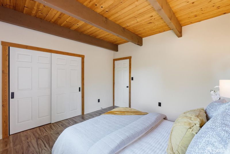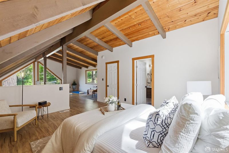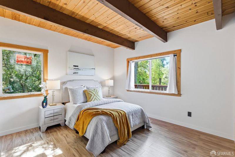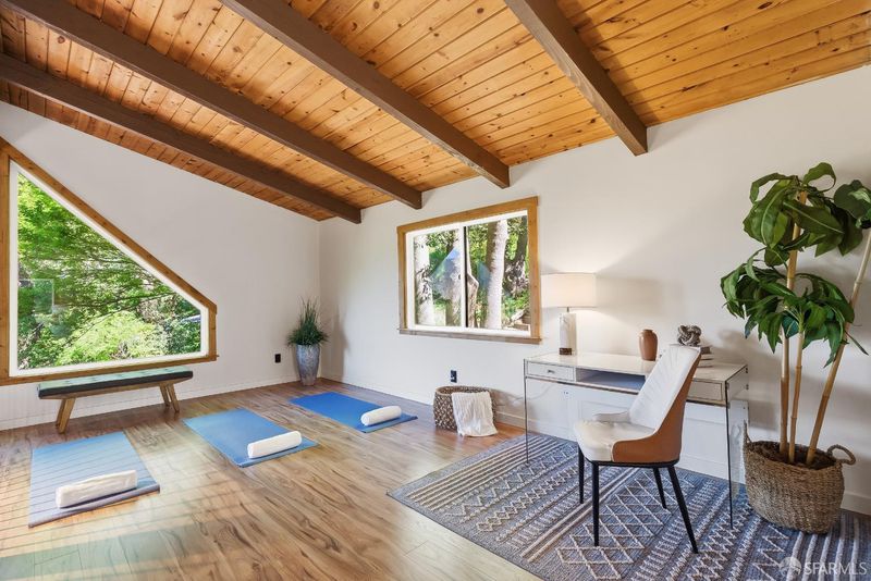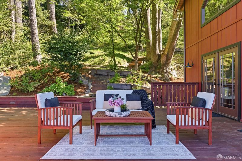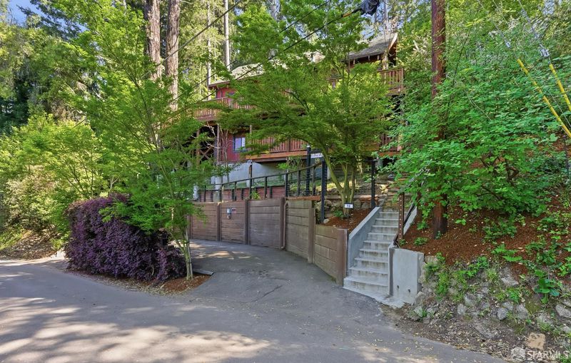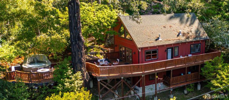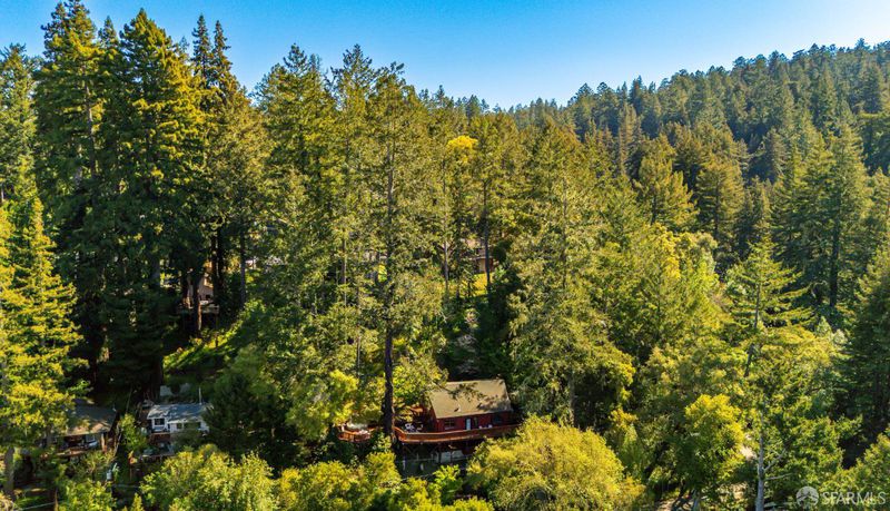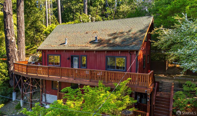 Nestled among towering Giant Redwoods & Douglas Firs, this distinctive three-level hillside retreat blends rustic country charm with thoughtful modern upgrades, (Exit off 17 South before the "fish hook") elevated private living with warm architectural details and serene forest views, the home offers a unique treehouse-like living experience while maintaining comfortable contemporary living. The residence features three-bedroom areas, plus a spacious loft suite that functions like a private primary retreat, complete with a modern en-suite bathroom, cedar-lined walk-in closet, and an additional flex area ideal for a den, nursery, or exercise space. Throughout the home you'll find exposed beams, wood slat ceilings, and a new state-of-the-art gas stove fireplace, adding warmth and character to the living space. The kitchen and bathrooms have been tastefully renovated, including the sleek modern loft bath and a country-style main floor bath with a soaking tub. The home features all new appliances (multi-door refrigerator that makes regular and ball ice, wired dimmable under counter lighting and an electric air-fryer capable range with a 5-burner cooktop, a separate laundry room with new washer and dryer, and an energy-efficient heat pump system providing energy efficient heating and cooling. Outdoor living is truly special here. There is also an expansive 80-foot deck that winds through the surrounding forest canopy and features a custom, built-in cement, tile & stone hot tub and an imported Moroccan Tiled Gas Fire Table (hooked into the gas line), creating an extraordinary setting for relaxation or entertaining among the trees. The lower level offers exceptional flexibility, with its own entrance, walk-in shower, and potentially a kitchenette area featuring an all-in-one refrigerator, two-electric burners, and sink ideal for guests, extended family, a regular bedroom, or potential in-law living. Additional features include an EV charger (220V) and 3-car tandem driveway. A rare opportunity to own a character-rich forest retreat with modern amenities and versatile living spaces.