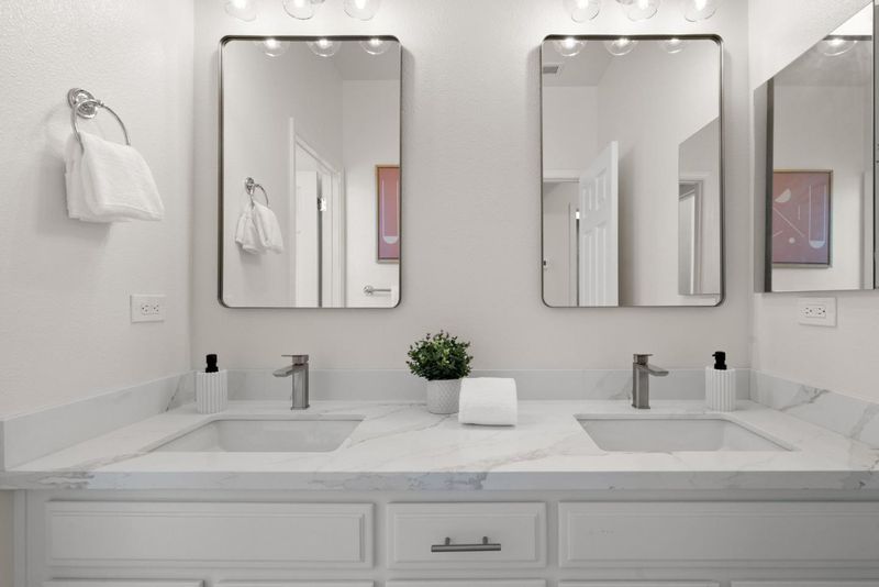 - Double Sinks, Full on Ground Floor, Marble, Primary - Oversized Tub, Primary - Stall Shower(s), Solid Surface, Stall Shower - 2+, Tile, Updated Bath