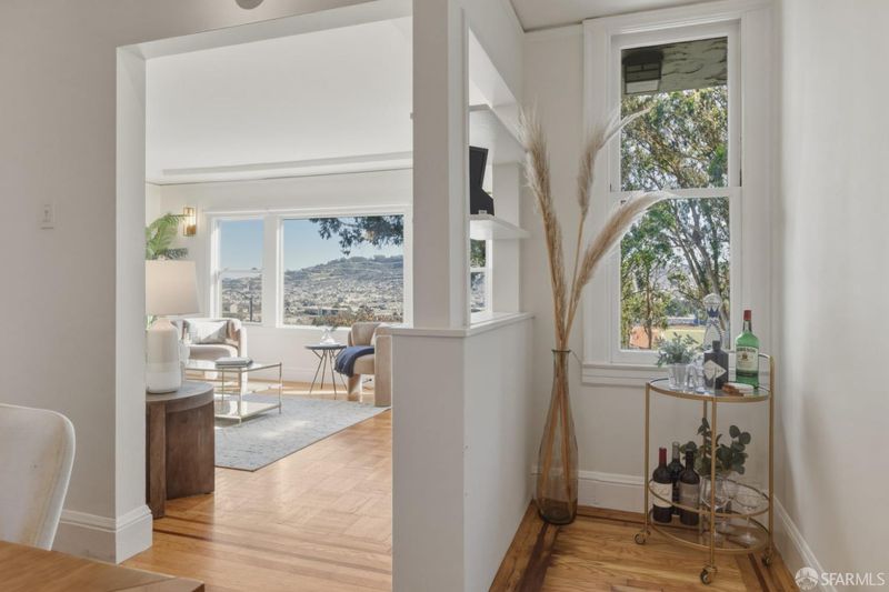 Welcome home to this Sunnyside gem with sweeping city views! Elevated above the street, the home offers added privacy along with a unique vantage point that enhances both the views and overall charm. This 2-bedroom, 1-bath residence feels inviting from the moment you walk in, featuring hardwood floors, a fireplace, and a large picture window that beautifully frames San Francisco from the living room.The spacious dining room flows seamlessly alongside, while the kitchen offers a great space to cook and gather. Two bedrooms and a full bath complete the main level. One of the bedrooms provides direct access to the private backyard perfect for fresh air, relaxation, and access to the one-car, deep garage with W/D and ample room for storage. From the rear of the home you'll enjoy additional views overlooking Sunnyside. Ideally located near everyday conveniences, including Balboa Park BART, Whole Foods, Safeway, Philz Coffee, City College of San Francisco, and the many shops + restaurants at Ocean Ave. Easy access to both north and southbound Interstate 280 is less than a mile away. A great opportunity to own a well located home with beautiful views, don't miss it!