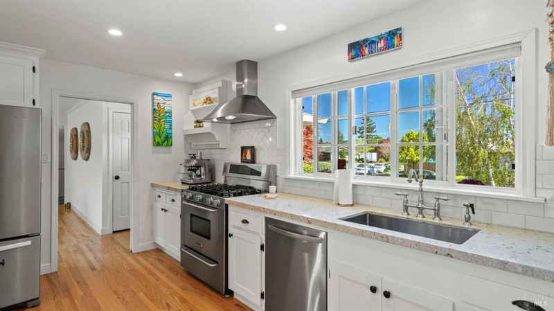 Gorgeous and stunning remodeled home all on one level in Novato's coveted President's Cup Neighborhood. Thoughtfully remodeled to take advantage of a stellar indoor-outdoor flow for optimal entertainment, functionality, and relaxation with your family. The chefs' eat-in kitchen features a large center island, a gas range with a newer hood, Caesarstone counters, designer lighting, and a large pantry, all of which flow out to a flat backyard ideal for maximum enjoyment. The dining room, living room, and kitchen are all interconnected, anchored by a cozy fireplace for seamless functionality and design. Also on the main level, you will find three additional bedrooms and two bathrooms, including an en-suite bed and bath. On the other side of the residence, you will find a large media room/fourth bedroom/primary suite complete with its own bathroom and walk-in closet. The private and meticulously maintained backyard is complete with mature fruit trees, raised planter beds, an additional storage shed, and a brick terrace. Extensive upgrades include dual-pane windows and French doors, refinished hardwood floors, a newer roof, newer AC/Heat, a two-car attached garage, and more! An exceptional opportunity in one of Novato's most desirable neighborhoods, close to schools, shopping, parks, and trails, but a short distance to Hwy. 101. Don't miss it!