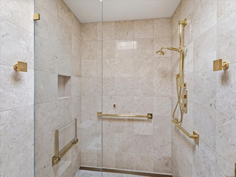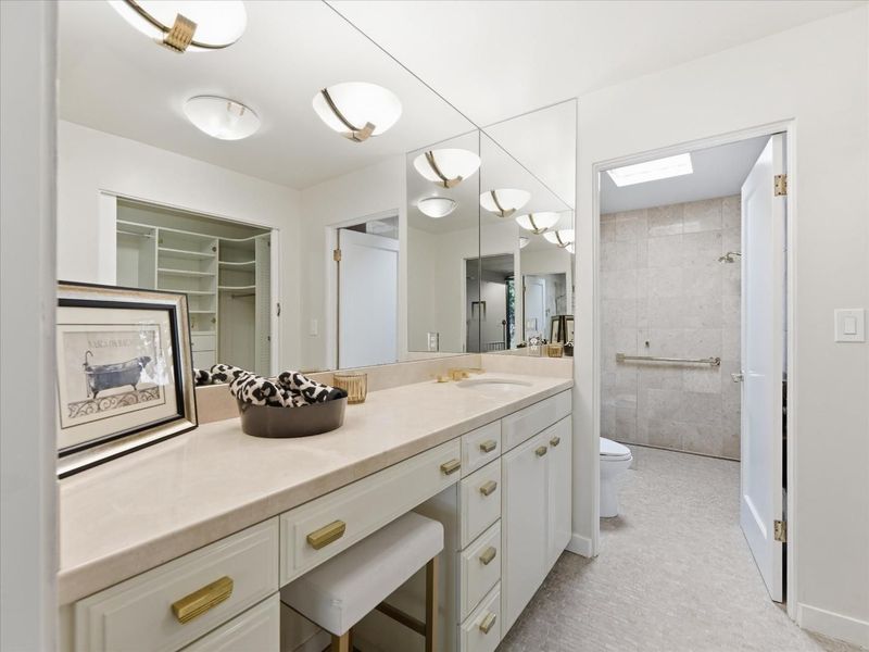 - Double Sinks, Full on Ground Floor, Half on Ground Floor, Primary - Stall Shower(s), Shower over Tub - 1, Skylight, Tile, Updated Bath
