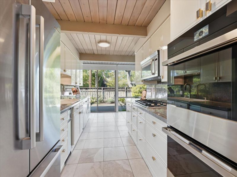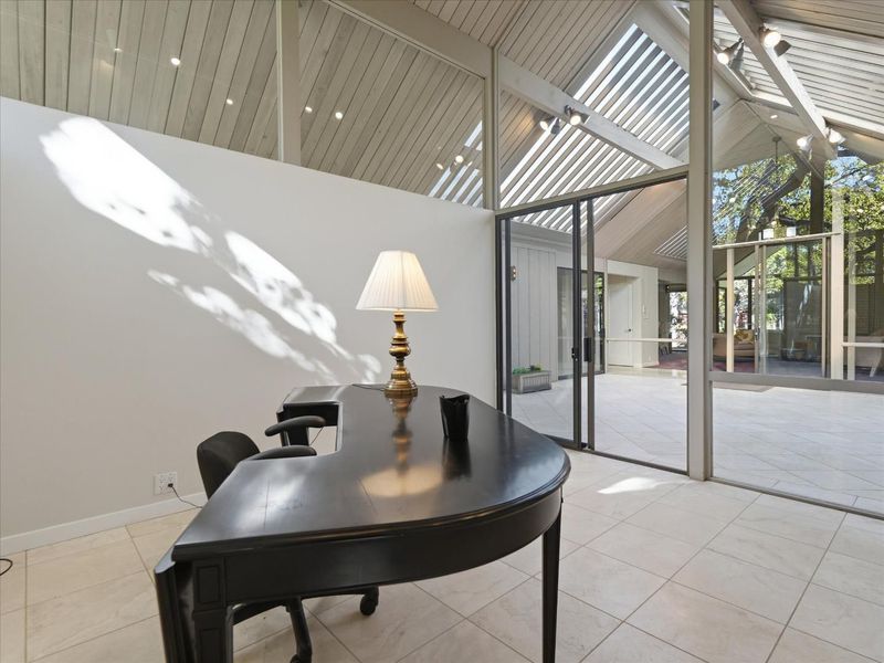 First time on the market in over 50 years! Welcome to this incredible Joseph Eichler expansive home near the Community Center, walking distance to downtown Palo Alto. This spacious 4-bedroom 2.5-bath residence spans 2,382 square feet offering a blend of modern comfort and functional design. The updated kitchen features granite countertops, and a full suite of top-of-the-line stainless steel appliances including a Wolf gas cooktop, Jennair self-cleaning double ovens, Bosch microwave, Bosch Double Door refrigerator w/ bottom freezer with ice maker, dishwasher & trash compactor. Washer & dryer included in sale. The home's high ceilings, open beam design, skylights & vaulted ceilings enhance the sense of space and light. The atrium provides a light-filled, inviting courtyard for relaxing & an indoor garden. Mature landscape offers a peaceful and private backyard, great for entertaining. The atrium offers approximately 479 sq ft of additional living space year round (please see Matterport floor plan). This wonderful home is located in one of the most sought-after, tree lined neighborhoods in northern California/Silicon Valley. Offering the award-winning Palo Alto Unified School District. An Eichler Gem not to be missed!