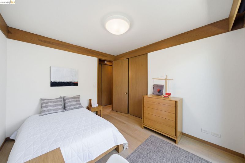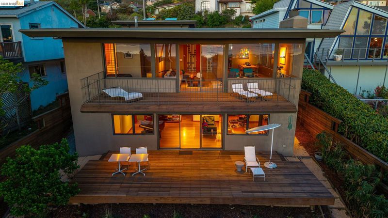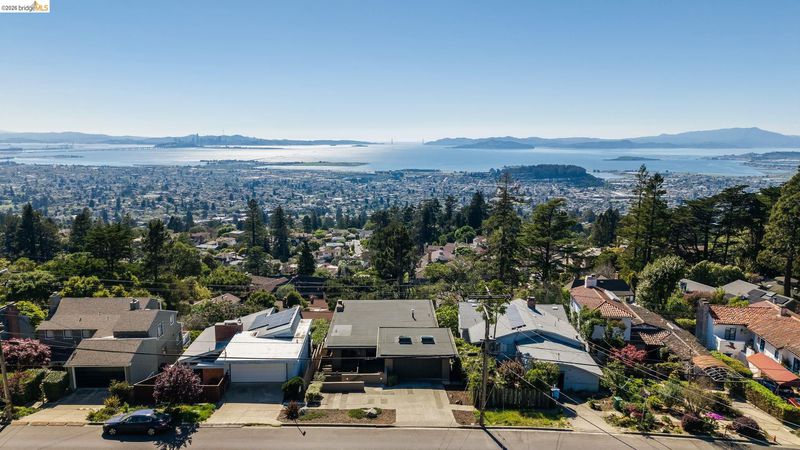 Designed in 1968 by noted Berkeley architect John Rolf Hattam, this mid-century modern gem sits on one of the East Bay's most celebrated ridgeline addresses. Hattam pushed the western facade toward the Bay, creating unobstructed sightlines not just to the west but north and south as well: a panorama with the Golden Gate Bridge front and center. The main level features three bedrooms, two baths, and an open living and dining room with soaring ceilings, eight-foot doors, and original wood-paneled walls complemented by museum-quality white oak floors. The updated kitchen features polished concrete counters and custom Heath tile. A private Japanese garden courtyard and cantilevered deck extend the living space outdoors. The lower level offers a family room, guest bedroom, full bath, and storage pre-plumbed for a future kitchen, with its own garden deck and Bay views. For over a decade this home served as the creative sanctuary of celebrated Bay Area painter Wanda Westberg, whose work is held in international collections. Her paintings are featured throughout, making every room a living gallery. The converted garage studio, with skylights and professional art lighting, remains ready for its next creative chapter. Pedigree, views, and inspiration — built in. HES = 6.