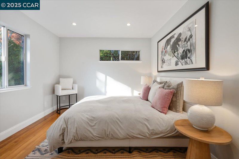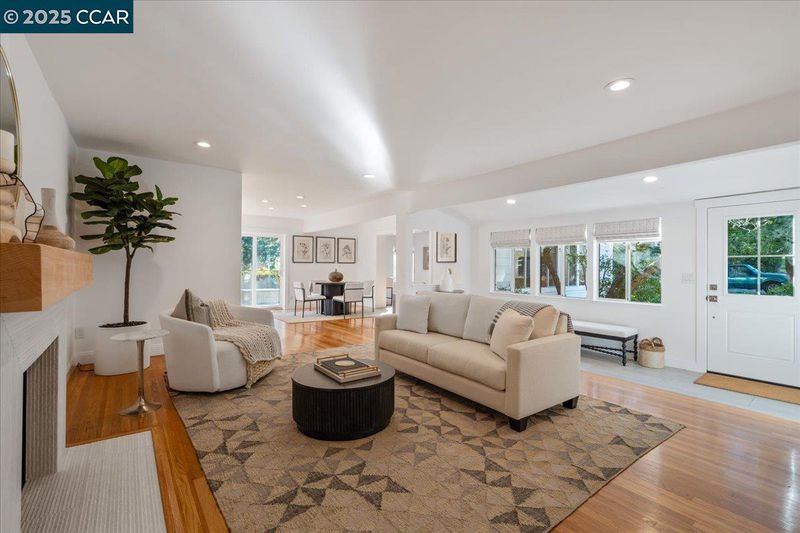 Welcome to 19 Valley View Drive, a beautifully remodeled four-bedroom, two-bath home in the heart of Orinda. Every space has been thoughtfully updated, including a brand-new kitchen with marble countertops, hardwood floors throughout, and designer bathrooms. The open-concept flow connects the kitchen, dining, and living areas, highlighted by a dramatic vaulted-ceiling living room and a sleek farmhouse door leading into the kitchen. Off the dining room, a private elevated deck offers the perfect place to unwind or entertain. The primary bedroom enjoys direct access to the backyard, as does a versatile flex bedroom, ideal as an office, art studio, or whatever you can dream up. The private, low-maintenance yard features mature fruit trees and peaceful outdoor spaces. A spacious two-car garage sits at the end of a long driveway for added privacy. All of this just a short walk to Orinda’s award-winning schools.