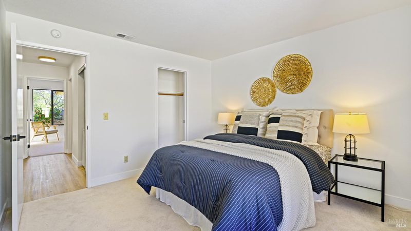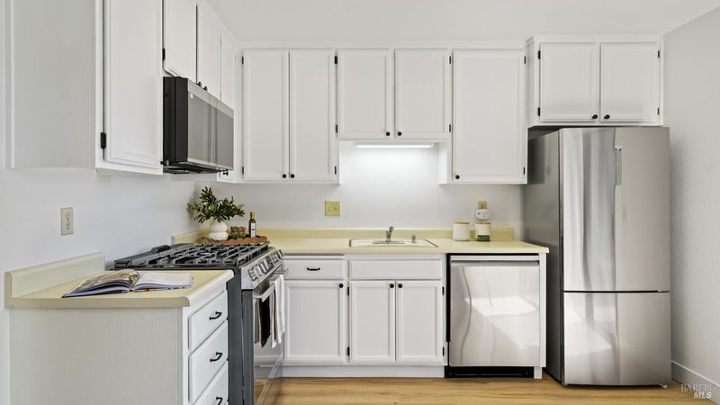 Updated living in the heart of East Petaluma is available in this wonderful condo home! Just inside you'll immediately fall in love with the fresh interior paint and newly installed elegant flooring running throughout. The spacious living room features a fireplace and slider to one of the private patios. The bright kitchen enjoys updated recessed lighting, recently installed stainless steel appliances, plenty of cabinet storage, dining nook, and a slider to an additional patio with storage unit. Luxuriate in one of the two comfortable bedrooms with fresh carpet and tons of natural light or fall in love with the remodeled bathroom with newer shower enclosure, updated fixtures, flooring, and lighting. Other home features include in-unit laundry closet, newly installed furnace, and a vibrant tree-lined neighborhood with parks and community pools! Not to mention the proximity to wonderful shopping, dining, and schools! You'll love calling this home'' every day!