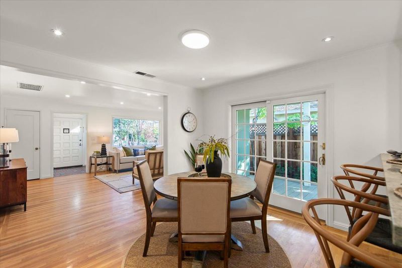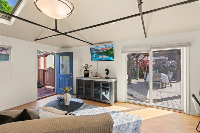 Welcome 287 Santa Margarita, a timeless Menlo Park Traditional with one of the best backyards in The Willows. Enter into a foyer that leads to an open floor plan, with hardwood floors and tons of natural light. The living room is anchored by a wood-burning fireplace and large picture window, while the dining room leads to the side deck and is open to the remodeled kitchen with tons of storage, a spacious pantry with pull-outs, and the laundry room. Two bedrooms share an updated bathroom and the oversized primary suite has two closets and an ensuite remodeled bath with walk-in shower and marble-topped vanity. As an added bonus, the garage has been converted to a bonus space with a bathroom, Murphy Bed, separate entrance, and a large closet - perfect for multigenerational living, home office/gym, guest house, and many other practical uses. Once outside, the sounds of the birds and bees abound: a heated pergola with built-in lighting, fans, and a mounted TV for al fresco dining or outdoor movie nights, a firepit, garden bed, playground, fish/turtle pond, BBQ deck, and large grassy area for relaxing and playing. Come find your sanctuary at 287 Santa Margarita!