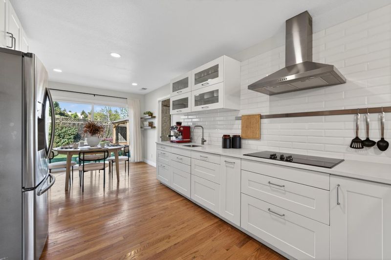 Fully remodeled inside and out in 2022, this beautifully updated Rose Glen home offers nearly 1,600 sq ft of thoughtfully designed living space with 3 bedrooms, 2 1/2 baths, and a 2-car garage. Renovations were completed with permits and feature gorgeous hardwood floors, new windows, and a finished garage that provides excellent bonus space for a gym, playroom, or workspace. The spacious primary suite features a cathedral ceiling, a large walk-in closet, and a well-appointed bathroom. The home's layout is ideal for both daily living and entertaining, with the kitchen overlooking the backyard for easy indoor-outdoor connection. The newly designed backyard includes a covered patio and lawn, creating a perfect setting for outdoor dining, celebrations, and gatherings. The open flow between the home and yard makes hosting effortless. Located in a quiet neighborhood with minimal traffic, the home enjoys a strong sense of community with friendly neighbors and regular neighborhood gatherings. Two nearby parks with playgrounds are within walking distance, offering easy access to outdoor recreation. While peaceful and tucked away, the location provides quick access to Willow Glen, Rose Garden, Santana Row and Campbell. A truly convenient point for commuting throughout Santa Clara county.