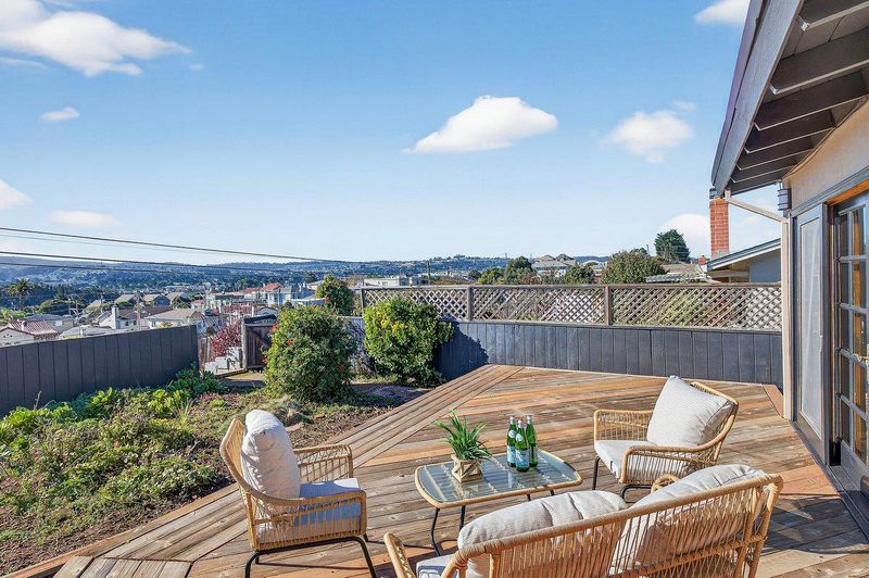 Sought after Sign Hill Neighborhood, this Ranch style home WOWS you with expansive views up top of the neighborhood and the mountains, beautiful sunsets and at night City lights. This reverse floorplan invites you into a relaxing Livingroom with fireplace, charming French double doors. Refinished hardwood floors & fresh paint. Dining area and warm built-ins accent the space. A Modern kitchen features a skylight, granite counter tops, custom wood cabinets, large eating area, laundry/ pantry area. Three bedrooms, two baths. Primary has 3 cedar lined closets with overhead storage cabinets. Two car garage and street to street access with a Lane be hide it. Private low maintenance yard is a gardener's delight. Sunny South-West exposure is ideal for your own vegetable garden. You'll love being just minutes to local shops and great Restaurants in SSF's vibrant downtown. Prime location conveniently located between San Francisco and Silicon Valley. Just minutes to Genentech and the Biotech Central. Quick highway access, the SFO Airport, Cal Train and Bart.
