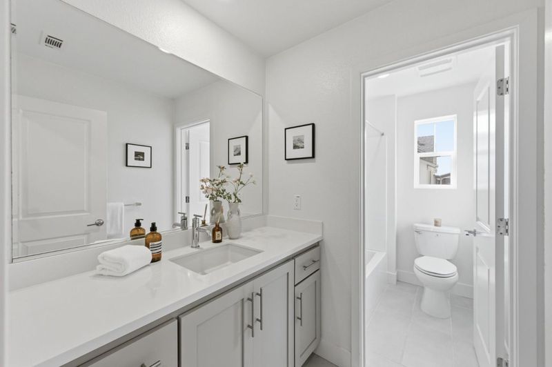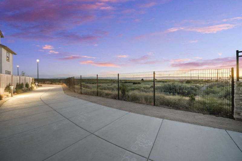 Positioned on a premium lot with no rear neighbors, this 2024 Bridgeway residence offers maximum privacy and incredible views that are a rare find within the community. The layout features dual primary suites, providing a versatile floor plan perfect for various living arrangements or a high-value rental. The home centers on a bright, open living area with natural light. The gourmet kitchen features a gas stove, designer cabinetry, premium quartz counters, and a walk-in pantry. Modern, light LVP flooring spans the upper levels, with the 2nd floor opening to a private balcony for relaxation and entertaining. In the dining area, large windows frame breathtaking sunset views. Functional upgrades include a built-in workspace, energy-efficient construction, and a finished epoxy garage floor. Step outside to a curated oasis with a private yard, premium pavers, and an architectural retainer wall. Resort-style living is at your doorstep, with a playground and trail entrance down the street. Residents enjoy a short walk to the dog park and clubhouse, featuring a pool and BBQ areas, while nature enthusiasts will appreciate the nearby wildlife refuge trails. Commuting is effortless to tech hubs with easy access to the Dumbarton Bridge and I-880.