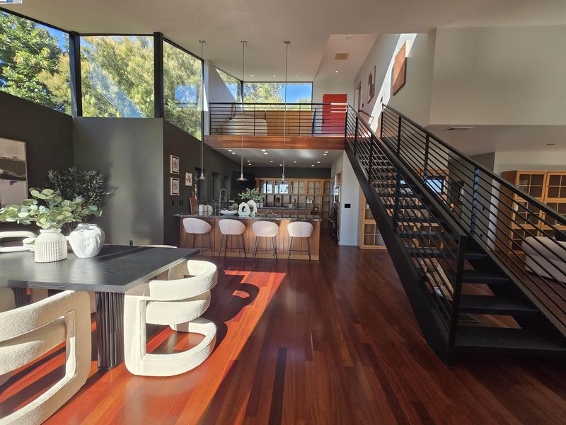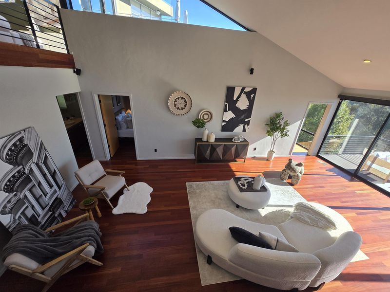 Welcome to this stunning custom residence, designed by award-winning architect Art Busse & perched in the Oakland Hills w/sweeping panoramic Bay & hillside views. The main level showcases a spacious living room w/ expansive windows, tall ceilings & contemporary architectural lines. The open dining area flows seamlessly into the chef’s kitchen, featuring abundant cabinetry, a gas cooktop & stainless steel appliances. A bedroom & full bath on this level provide added convenience & flexibility. The lower level offers a family room, a primary suite, 2 bedrooms, a hallway bath & a laundry room. Multiple sitting areas throughout the home connect beautifully around the striking floating staircase, creating an ideal environment for both relaxed living & memorable entertaining. Step onto the generous deck to unwind & take in the surrounding vistas. Paid solar system, EV charger, central heat, A/C & attached 2-car garage. Located just 10 minutes from Montclair Village, you’ll enjoy easy access to coffee shops, boutiques, groceries, restaurants & farmers’ markets. Near Redwood Regional Park, Joaquin Miller Park & Sibley Volcanic Preserve - offering miles of scenic trails. Great schools & easy access to Hwy 13, 580 & 24.