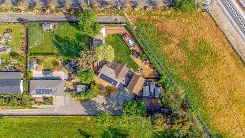 Beautifully remodeled 3 bedroom 2 bath home at end of private lane in Windsor. 1 bedroom ADU above garage with private entrance and views. 2 bedroom detached unit at back of property. Total 6 bedrooms 4 baths on .65 acres. Above ground pool with deck and play yard for the little ones, chicken coup, fenced doggie play yard, outdoor fire pit, raised garden beds and covered patio with outdoor kitchen and lighting. Family compound or income potential. Walk to downtown Windsor and take the smart train to the city. Olive, fig, lemons, oranges and plum trees produce wonderful fruit. Welcome Home!