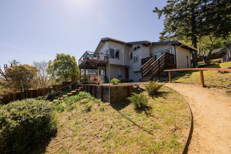 Beautiful home with stunning sunset and valley views, a spacious backyard, and located on a quiet street with no through traffic. The living room is open and inviting with soaring wood beam ceilings, abundant natural light, a cozy fireplace, and access to a private deck. Luxury vinyl plank flooring flows through the main living areas, kitchen, and primary bedroom for a clean, cohesive feel. The kitchen features ample real wood cabinetry, a center island, and opens to a generous dining area with incredible valley views. Step out to the large balconyperfect for entertaining or enjoying sunsets. The primary suite offers an en suite bathroom, a loft ideal for an office, and a private balcony with backyard access. Two additional bedrooms and a laundry closet complete the home. A large 2-car carport with storage below adds convenience. The backyard shines with garden beds, walkways, mature trees, and a peaceful setting. Close to parks, shopping, dining, award-winning Scotts Valley schools, and minutes to the beach or Silicon Valley.
