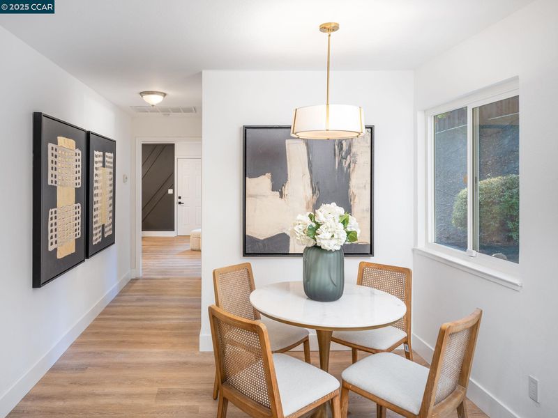 Dynamic Alamo contemporary design. All new interior. Stunning finishes. Light-filled 2788+/-SF. 2 levels on .47 acres on cul-de-sac. Captivating curb appeal. 5 bds. 3 bths. inclds 2-rm primary suite & main-level bdrm/office near full bthrm. Wood-grain luxury vinyl flrs. Recessed lighting. Stunning accent walls. Stylish chandeliers, sconces. Frosted glass-paneled double front door. Dual-pane windows. Fresh int/ext paint. Open flrplan. Living rm w/frpl, built-ins. Dining rm. Wine refrigerator. Galley-style kitchen. Quartz counters. Decorative tile bksplsh. Soft-close cabinets. Floating shelves. Brushed gold fixtures, pulls, pot filler. Bosch stainless appliances. Porcelain apron sink. Casual brkfst nook w/slider to bkyd. Walk-in pantry. Fabulous fam/game rm w/frpl, slider to bkyd. Bkyd sanctuary. Gentle slope dotted w/oaks, pines. Patios, synthetic turf, putting grn. Frt gardens. Primary suite w/balcony. Separate rm for gym, retreat, nursery. 3 reach-in closets. Spa-inspired en suite. Dual-sink vanity. Free-standing tub. Glass enclosed shwr. 3-car garage, epoxy flr. HVAC. Laundry rm w/counter, cabinets. Half-mile to Livorna Park. Near top-rated K-12 SRVUSD schls inclds less than 1.5 mi to Alamo Elementary. Near Alamo Plaza, downtown Danville, Mt. Diablo, walking trails.