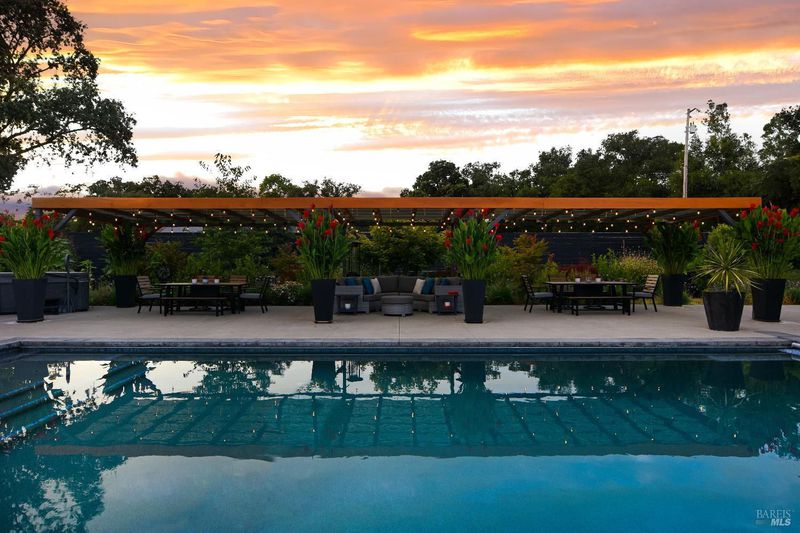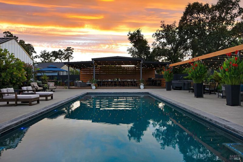 Modern Home & Pool, Detached ADU - all newer construction. Open Living, Kitchen & Dining Area flows to outdoor entertainment areas. Kitchen features custom painted cabinetry, Thermador appliances, 3' built in refrigerator, 2' built in freezer, quartz counters, clay fire sink and backsplash, dual dishwashers, 10' island with built in beverage refrigerator. 20' ceiling in great room with custom rough sawn beams & lighting. Custom features throughout, expansive primary suite/wing, guest wing, butlers pantry room, upstairs guest apartment adds a second great room, kitchen, hall bath, office and additional suite. Stunning Pool Party Area!
