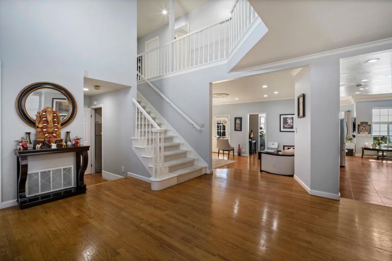 Available to tour by private appointment only. Welcome to this elegant custom home nestled on a quiet cul-de-sac in Fremont's highly coveted Mission San Jose neighborhood. Boasting majestic views of the surrounding hills, this stunning property offers a rare 5-bedroom layout with over 3,300 sq ft of luxurious living space on a generous 9,100+ sq ft lot. Step inside to discover a bright, versatile floor plan featuring beautiful hardwood floors, soaring ceilings, and expansive living areas perfect for both everyday living and grand entertaining. The layout is incredibly accommodating: enjoy a convenient guest bedroom and half bath downstairs, perfectly separated from the 4 spacious bedrooms and 3 full baths tucked away upstairsincluding a luxurious primary suite that wakes you up to breathtaking hill views. The true showstopper is the tranquil, resort-style backyard. Step outside to your private oasis complete with a beautiful built-in waterfall, a custom BBQ entertainment island, and plenty of room to dine al fresco under the California sun. Location is everything! Enjoy a front-row seat to premier, award-winning schools: Mission San Jose Elementary, Hopkins Junior High, and Mission San Jose High. Commuters will love the easy access to 680, 880, BART, and major tech hubs.